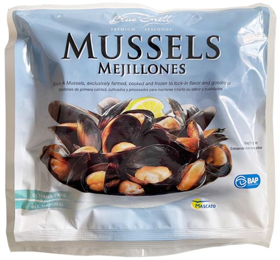 南米チリで養殖されたムール貝を軽くボイルし、鮮度の良い状態でパックし、冷凍した物。砂噛みや身痩せがなく、鮮度が抜群。ブイヤベースやパエーリャ、パスタのトッピングに最適。1パック約40個入り。